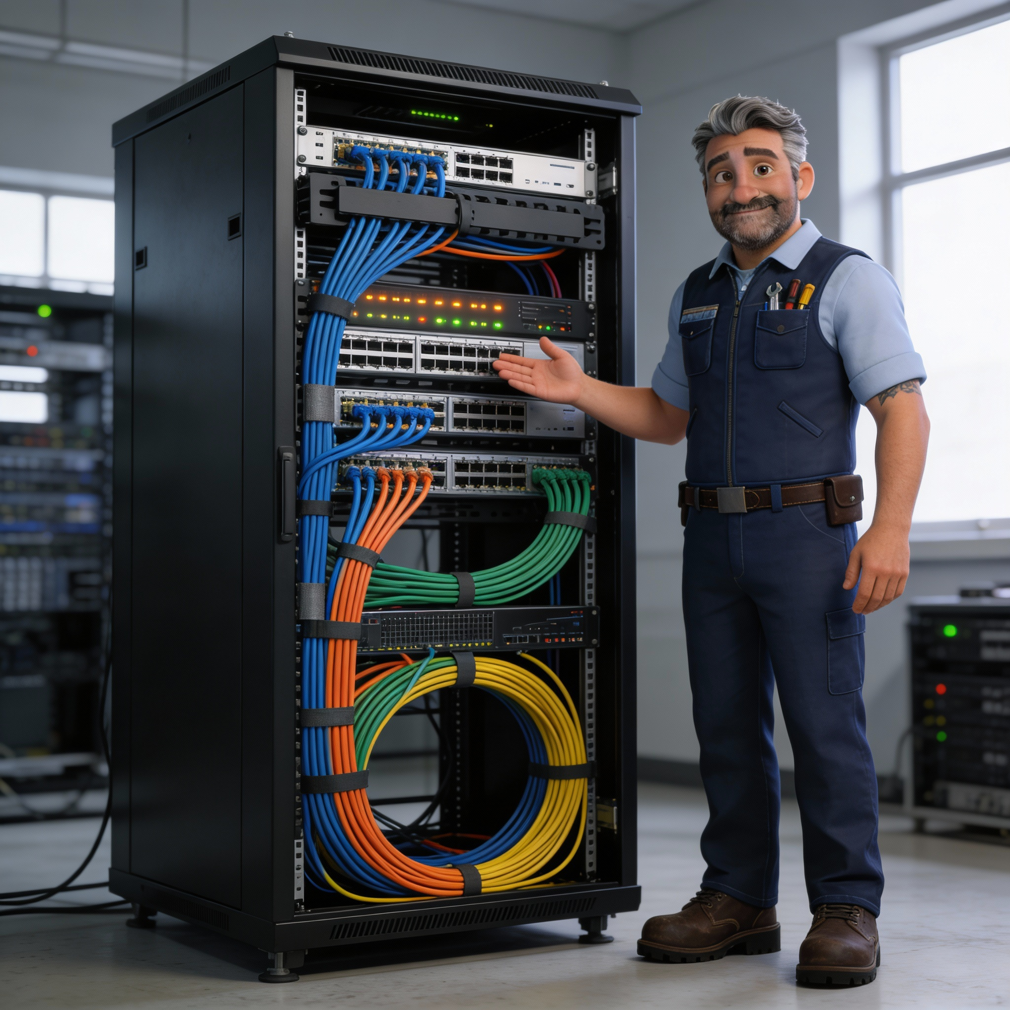 - Cableado estructurado + rack limpio.